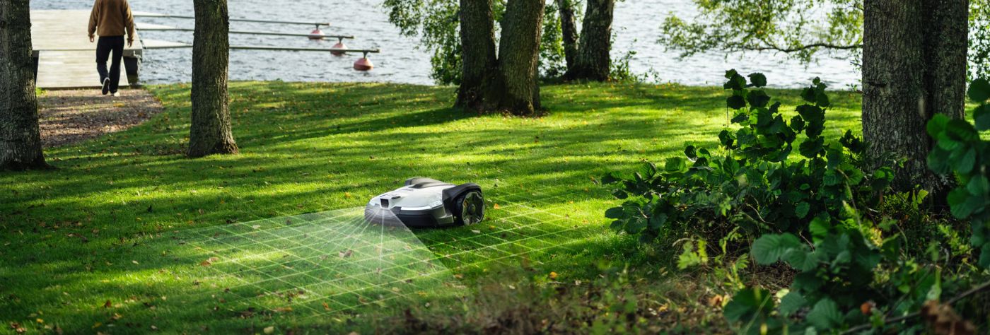Vision-tekniken hjälper Automower® att orientera sig även när satellitförbindelsen är svag eller störd – till exempel under träd, nära byggnader eller vid kuperad terräng.