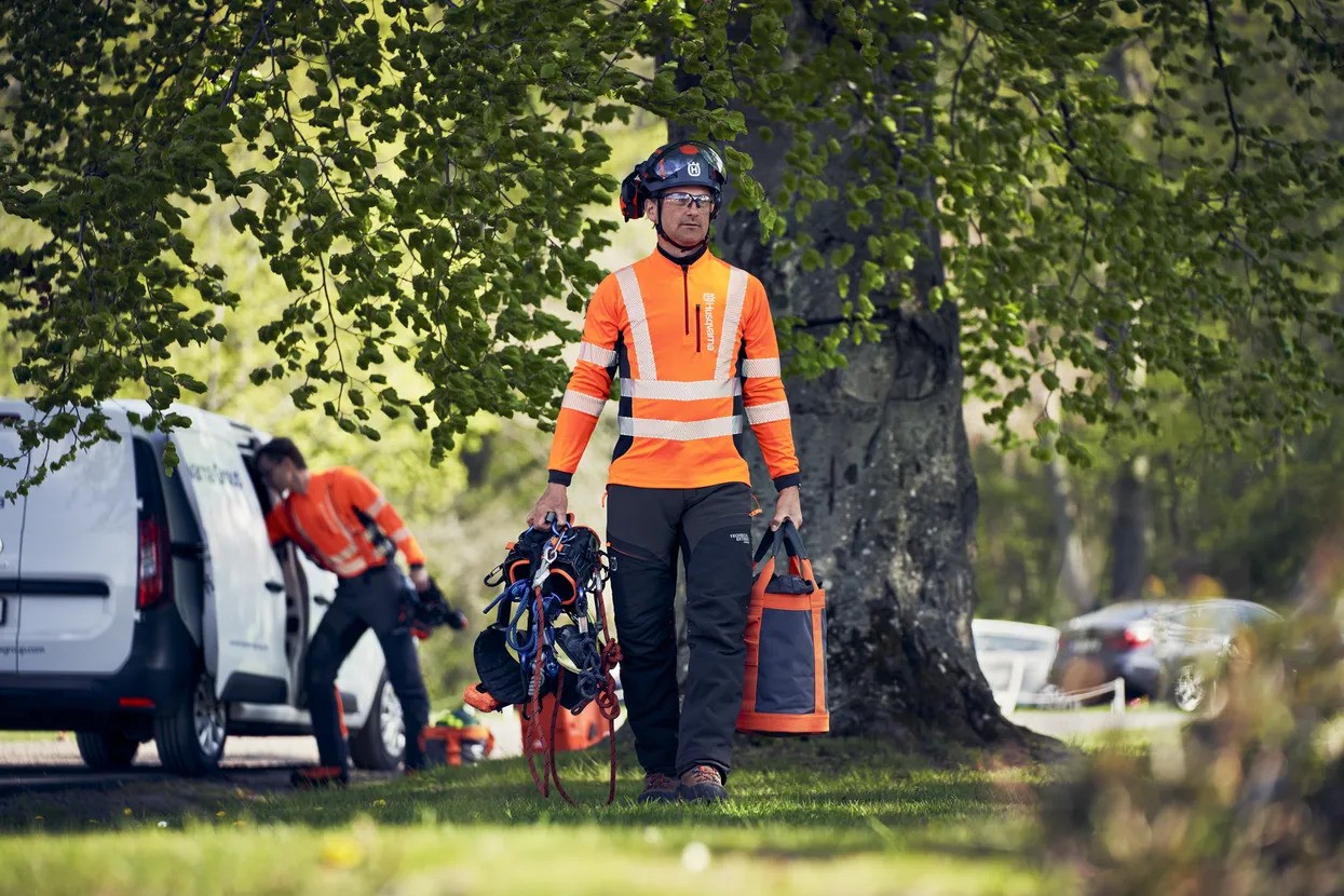 Tech-Climb är Husqvarnas innovativa lösning för trädklättrare som erbjuder optimerat sågskydd för hela benet vid användning av klätterutrustning. När du bär klättersele och stegjärn kan lagren av sågskyddsmaterial mot benet pressas ihop, vilket gör det svårt för skyddsmaterialet att dras ut och minska kedjehastigheten som avsett. Säkerhetslösningen Tech-Climb är skräddarsydd för att minska denna risk och är utvecklad för att lättare kunna dras ut.