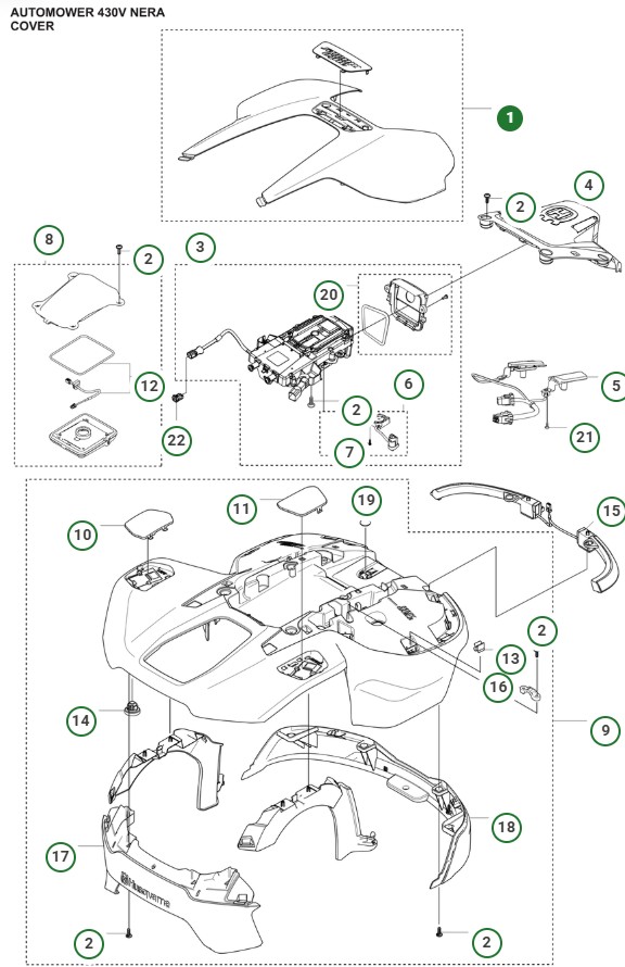540196901, toppkåpa till Husqvarna Automower 430V Nera