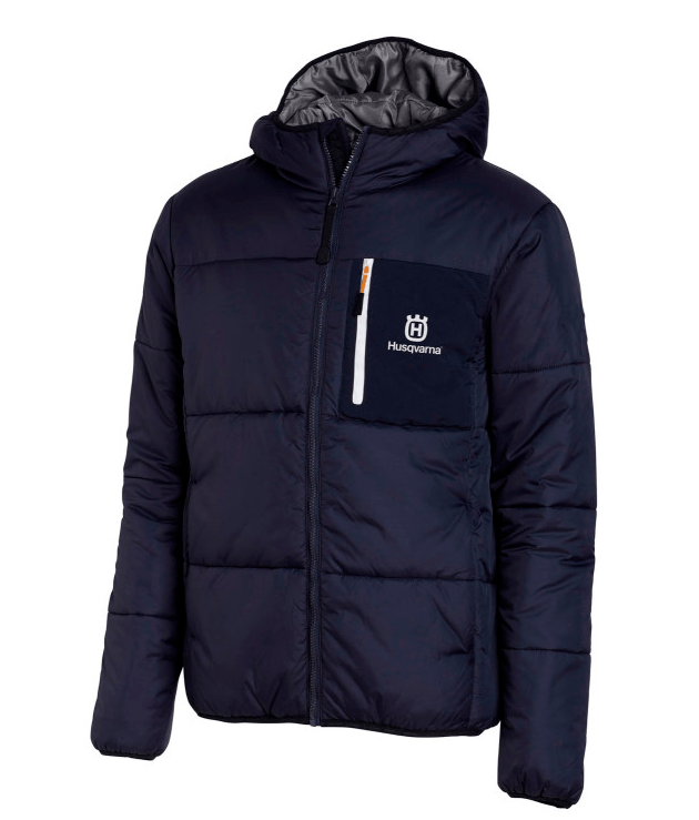Vind- och vattenavvisande Husqvarna jacka i snygg design. Mjuk polyester med stoppning. Husqvarna logo på vänster bröst. Damstorlekar - Specifikationer